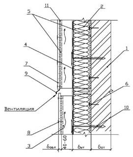 5.11.2. При трехслойной конструкции утепления стен рекоменду]ется выполнять следующие условия: